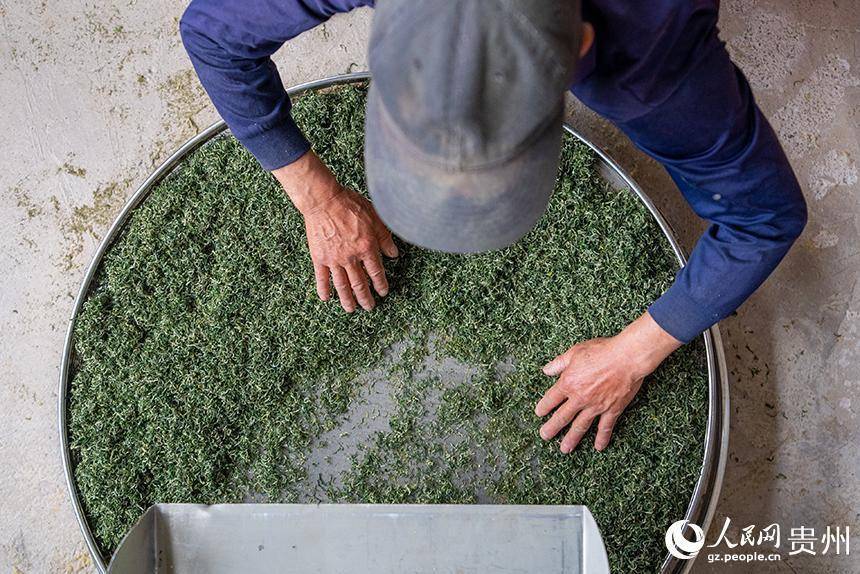 贵州省铜仁市沿河土家族自治县塘坝镇茶叶加工厂内正在加工的春茶。人民网记者 涂敏摄