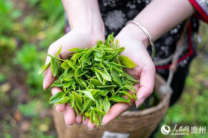 榨子村茶园内刚刚采摘的春茶。人民网记者 涂敏摄