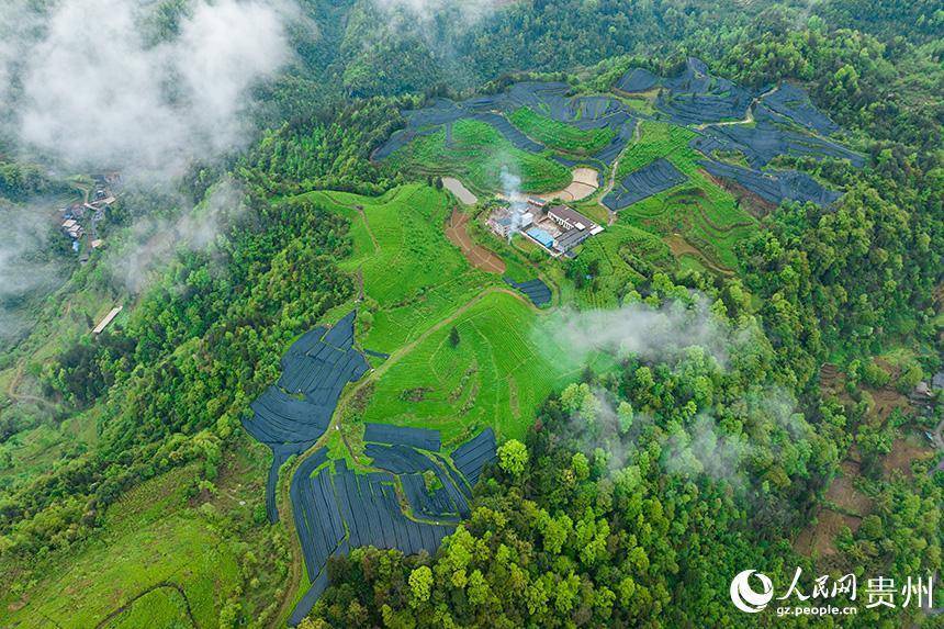 航拍贵州省铜仁市沿河土家族自治县塘坝镇茶园。人民网记者 涂敏摄