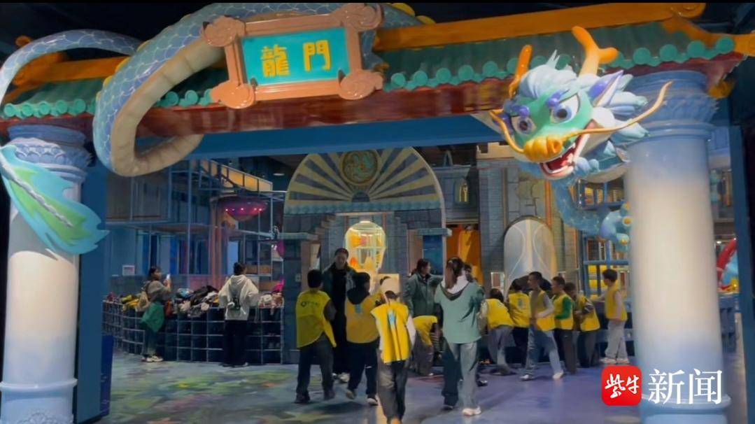 在熊孩子乐园、奇幻乐园里,超长滑梯、沙画创作、灵龙脱口秀等项目轮番上演,成为研学亲子家庭的欢乐天地。西游潮玩运动馆内,孩子们或屏息凝神、或欢呼雀跃,射箭、投篮、蹦蹦床、拳击、真人抓娃娃,让他们尽情“潮玩”,释放孩子们的趣玩天性。江苏首个溯溪飞拉达也吸引了众多亲子家庭的体验,岩壁之上,家长与孩子并肩前行,在安全绳索的保护下踏水攀岩,惊险与欢笑交织成春日里最难忘的“勇敢者挑战”。